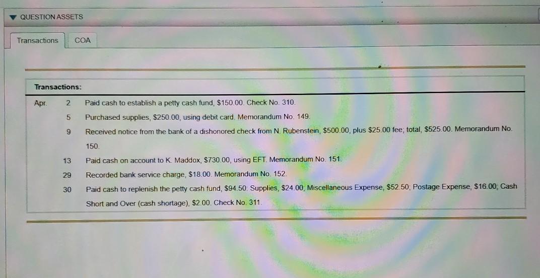 Solved Question Assets Transactions Coa Transactions Arg Chegg Com